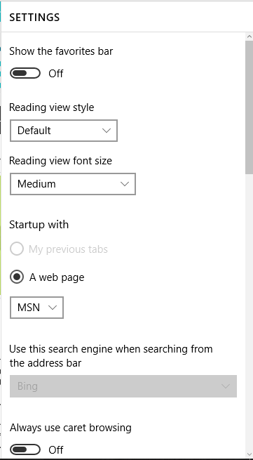 الميزة التى بالفعل نالت اعجابى هى الاعدادات فى متصفح Microsoft Edge اصبحت اكثر بساطة من اى متصفح اخر بواجه منبثة فى نفس المتصفح عكس الكثير من المتصفحات الذى كان ينقلك الى صفحة اخرى و يقوم بسحب الكثير من السرعة على الجهاز