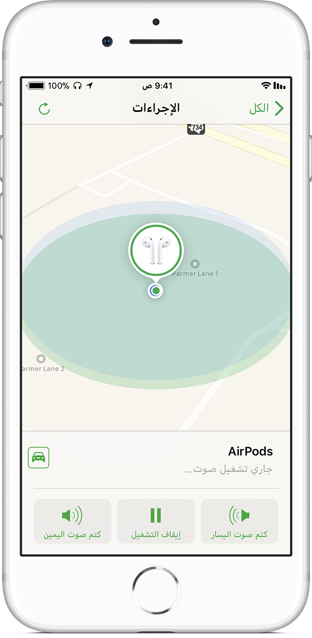 هل أنت بحاجة إلى مساعدة في العثور على AirPods؟ استخدم “العثور على الـ iPhone” لرؤية AirPods على خريطة وتشغيل صوت لتحديد موقعها، والعودة إلى الاستماع اللاسلكي.